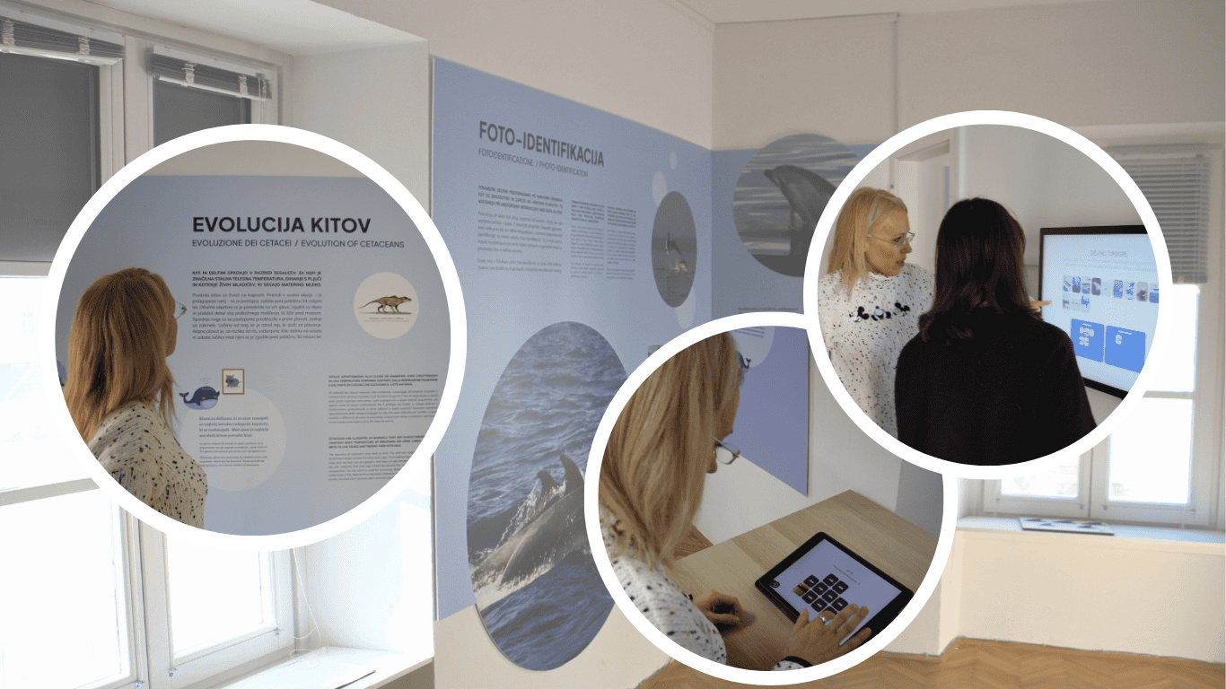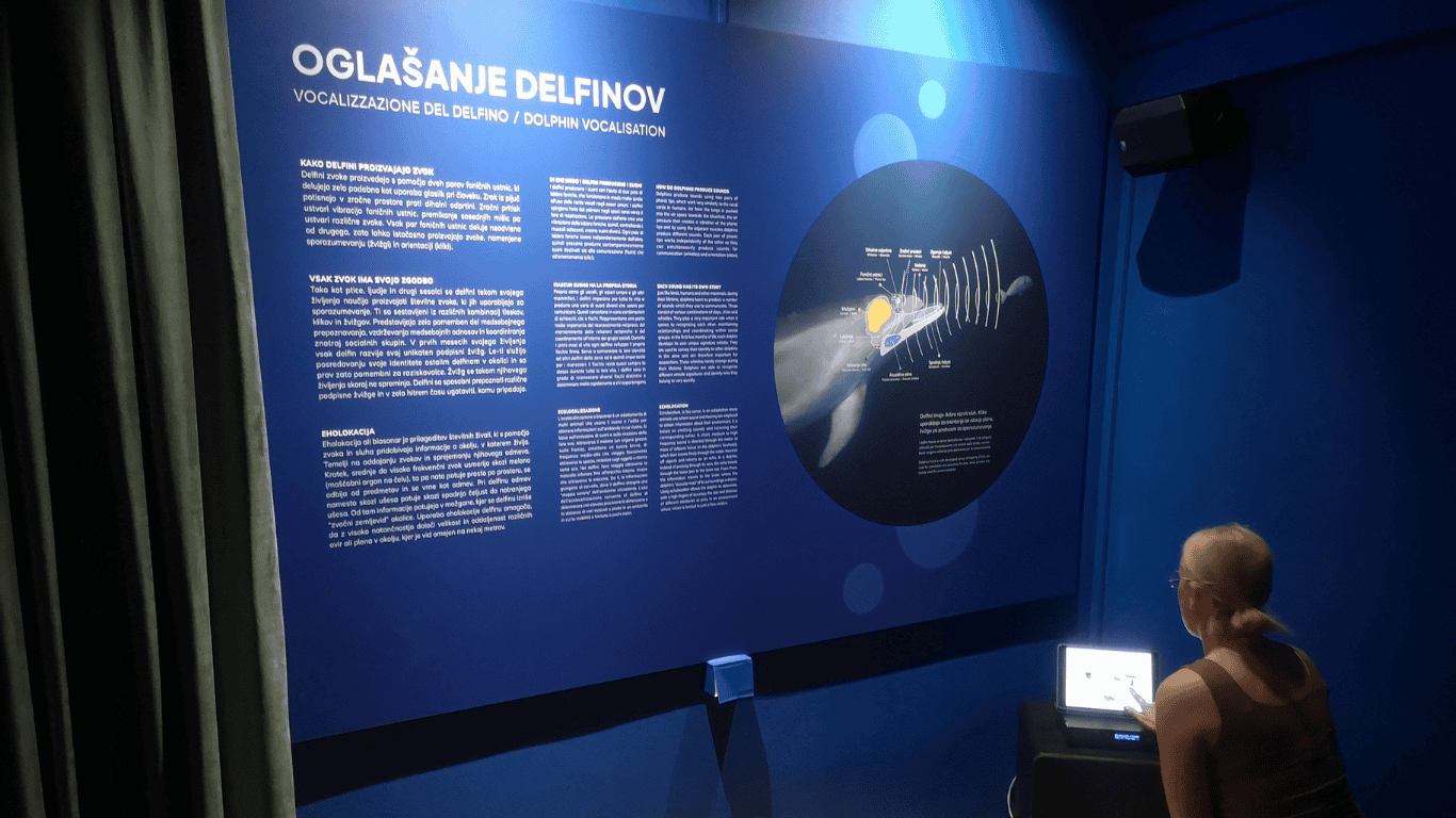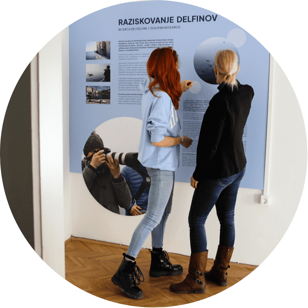 I visitatori del Centro dei delfini possono aspettarsi un’esperienza educativa che li conduce nel mondo affascinante dei delfini. La mostra offre uno sguardo alla loro vita e al lavoro di ricerca della nostra associazione. Inoltre, l’intera esposizione è disponibile in tre lingue: sloveno, italiano e inglese, per garantire un’esperienza accessibile a tutti. Oltre ai pannelli educativi, una parte interessante del contenuto sono anche gli strumenti interattivi che permettono ai visitatori di mettersi alla prova nel ruolo di ricercatore dei delfini.