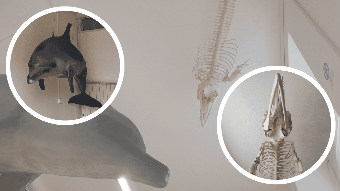 Un’attrazione interessante è anche la statua realistica del delfino a grandezza naturale, chiamata come uno dei delfini più osservati nel nostro mare – Morigenos. Con questa statua, il Centro offre ai visitatori una visione reale e delle dimensioni del delfino, che sicuramente li affascinerà. Il più recente acquisto del Centro è lo scheletro di un cucciolo di delfino, che consente ai visitatori di esplorare la struttura corporea dei delfini.